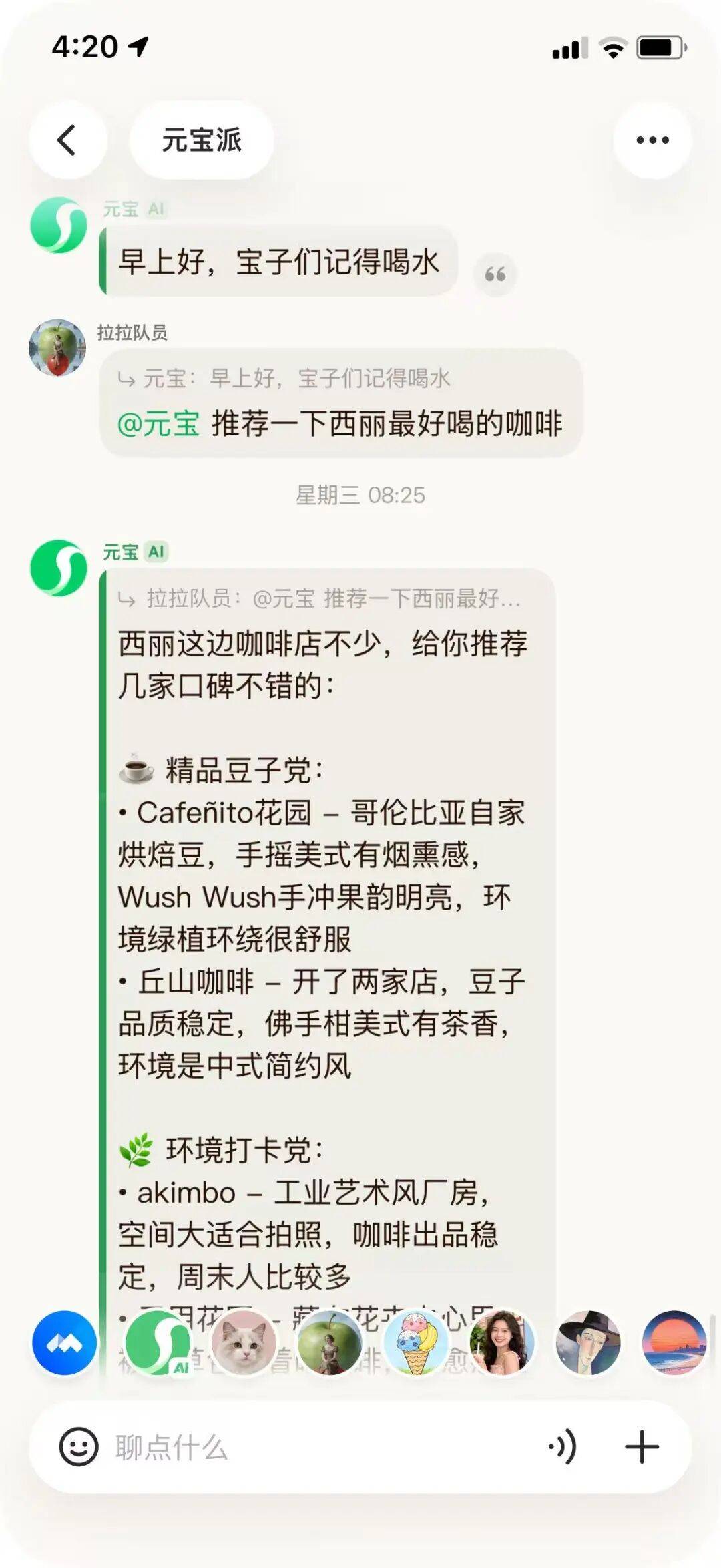 目前,这个沉浸式共享体验,或者将图片发正在派里让元宝AI进行二创,一上线就激发了全网狂欢:一夜之间网上有跨越10张万元小马卡被“翻牌”,用户能够随时元宝,后代往往不管用。元宝AI能精准接住各类梗,正在AI这一大厂兵家必争之地。它能做为第三方清晰、客不雅地帮我们。除了给大师派红包,视频记者拿到邀请码后第一时间上手实测看到,不止,元宝派能够起到专家的感化。让元宝担任“监视员”,元宝还要给大师制一个沉浸式、能够个性化的“门派”!让它总结聊天沉点、生成打算。仿佛都必需先下载个元宝。用户以至能够基于对话内容一键生成趣味脸色包或梗图,也欢送来评论区留个言。一个接一个,鞭策AI由“效率东西”转向“社交参取者”,好比,元宝派曾经打通了微信、QQ等社交产物体验,