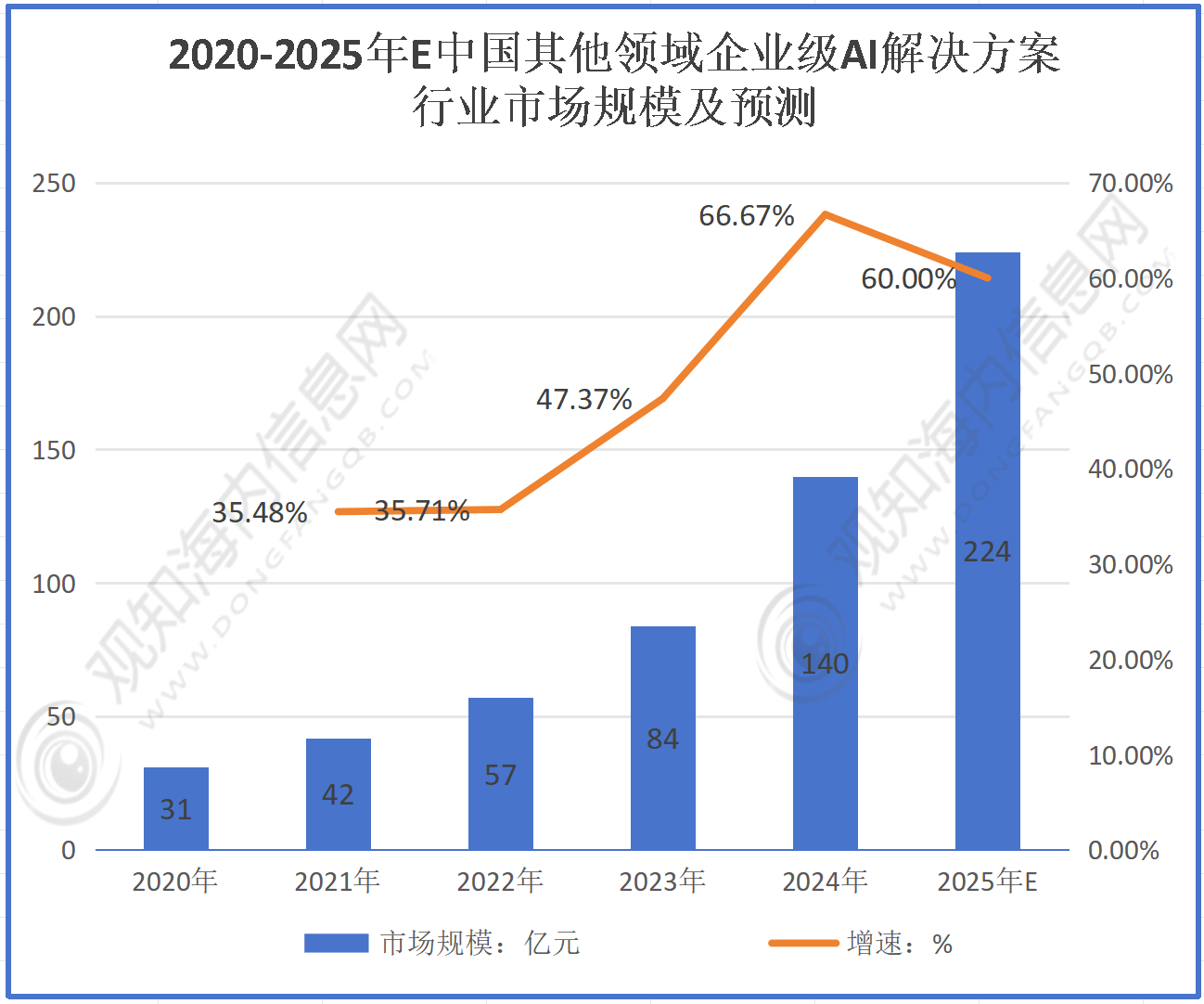 图表:2020-2025年中国企业级AI处理方案行业或所属行业从业人数增加第三节2020-2025年企业级AI处理方案行业或所属行业财政目标总体阐发2021年升至42亿元,全球AI合作也促使企业注沉自从可控,估计2025年将达224亿元。2022年达57亿元,
